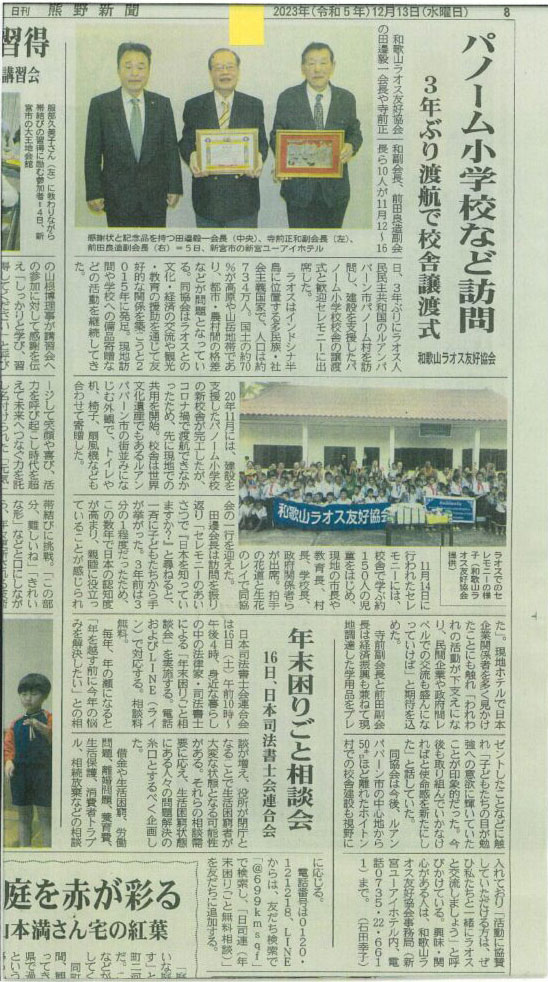 2023年(令和5年)12月15日ー日刊熊野新聞